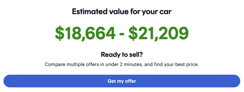 If you are interested in moving forward with the selling process on CarGurus, click Get my offer to see your options. Offers can change quickly based on the market and dealership network local to you. If you don't see available options right away, you can check back at any time for updates!